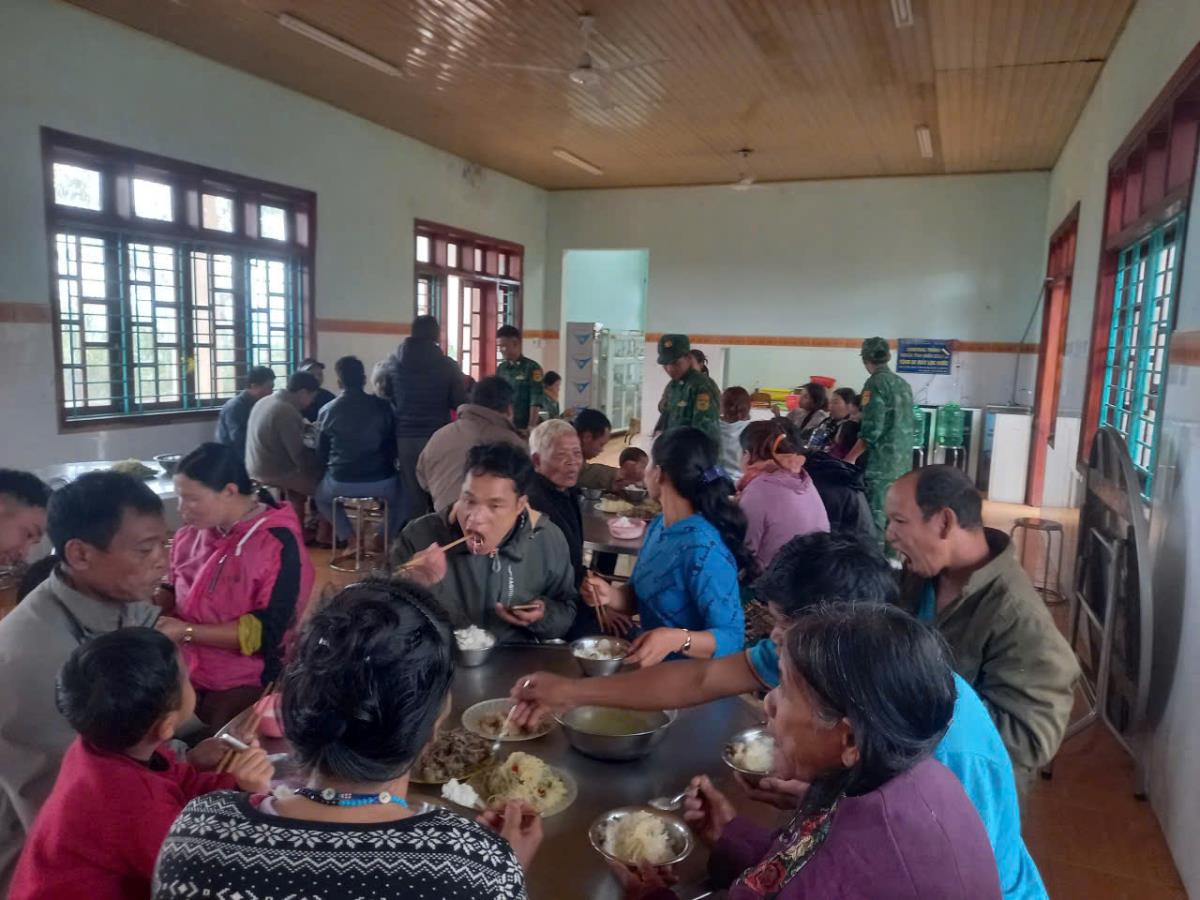 Đồn Biên phòng Ga Ry (BĐBP TP Đà Nẵng) phối hợp với Trường Phổ thông Dân tộc bán trú Tiểu học Ga Ry tổ chức “Bếp ăn 0 đồng” phục vụ người dân xã Hùng Sơn đang được di dời tránh sạt lở.