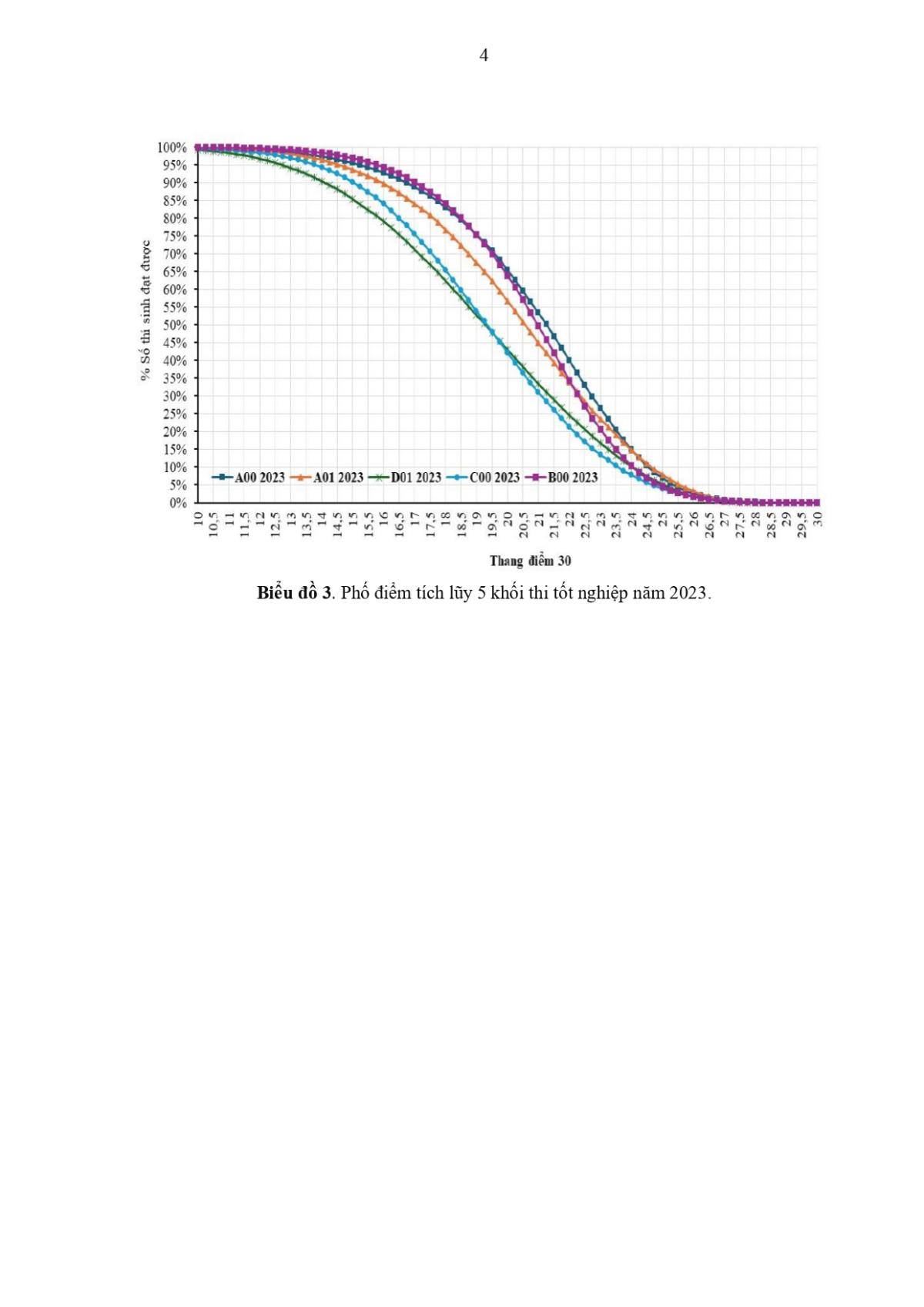 Cụ thể: Phụ lục I là biểu đồ đối sánh phổ điểm một số tổ hợp phổ biến từ kỳ thi tốt nghiệp THPT các năm 2025 và năm 2024, 2023.