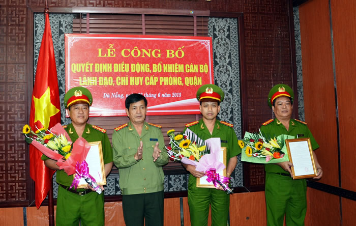 Theo đó, điều động và bổ nhiệm có thời hạn Thượng tá Nguyễn Phước Tốt (1966, quê Quế Phong, Quế Sơn, Quảng Nam), hiện là Phó trưởng Phòng CSĐTTP về TTXH giữ chức vụ Phó trưởng CAQ Liên Chiểu; bổ nhiệm Trung tá Đặng Ngọc Việt (1966, Bình Sa, H. Thăng Bình, Quảng Nam), Đội trưởng thuộc Phòng CSĐTTP về TTXH giữ chức vụ Phó trưởng Phòng CSĐTTP về TTXH; tiếp nhận và bổ nhiệm Đại tá Võ Văn Lanh (1964, quê Hòa Liên, H. Hòa Vang, TP Đà Nẵng), hiện công tác tại Cục CSĐTTP về Kinh tế và Tham nhũng (Tổng cục CS, Bộ CA) nhận chức vụ Phó trưởng Phòng CSĐTTP về Trật tự Quản lý Kinh tế và Chức vụ, CATP Đà Nẵng.