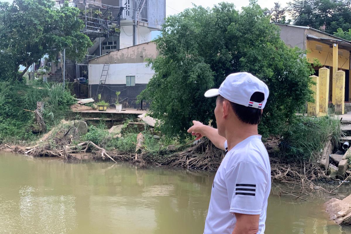 Chứng kiến cảnh sạt lở ngày một nghiêm trọng, nay đã vào đến tận vườn nhà, ông Nguyễn Đức Thắng (người dân tổ 5, thông Tân An) cho biết, trước đây giữa bờ sông và làng xóm có một bờ kè. Tuy nhiên theo thời gian, mưa lũ ngày một thất thường, dòng nước cũng bị thay đổi nên kè hỏng và không còn chức năng chống sạt lở. “Vườn nhà tôi bị xâm thực hơn 3 mét. Dấu vết bờ kè gần như chỉ còn lại những mảng bê tông đã vỡ. Khi có mưa lớn hoặc nước từ thượng nguồn đổ về nhiều thì cả nhà phải tự lên phương án sơ tán. Nhiều gia đình đều nơm nớp, ngủ không yên trong mùa mưa” - ông Thắng cho biết.