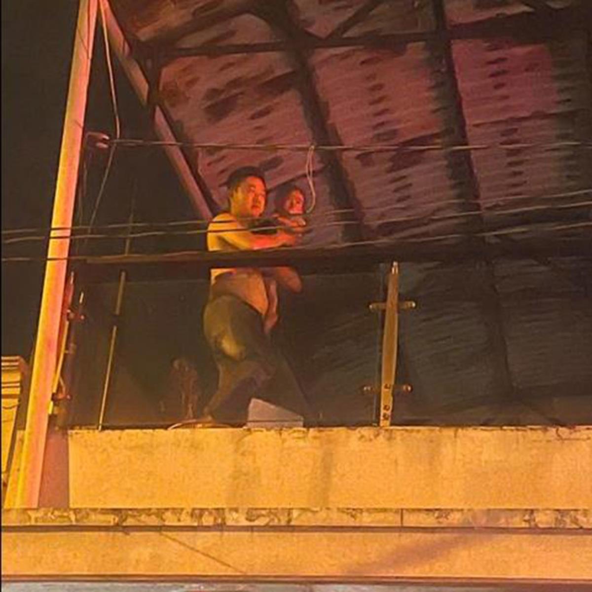 Do không có không gian để thoát ra bên ngoài, lượng khói mịt mù nhanh chóng lan tỏa lên các tầng bên trên thông qua con đường cầu thang bộ của khu nhà trọ. Không chần chừ, 2 chiến sĩ chữa cháy nhanh chóng băng mình xuyên qua khói lửa để tiến lên phía trên thực hiện khẩn cấp công việc cứu người. Một đồng chí cứu hộ leo ban công khu vực phía trước nhà để tìm đường vào giải cứu những nạn nhân đang mắc kẹt bên trong.