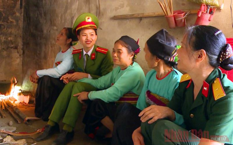 Nữ công an xã xuống địa bàn. |