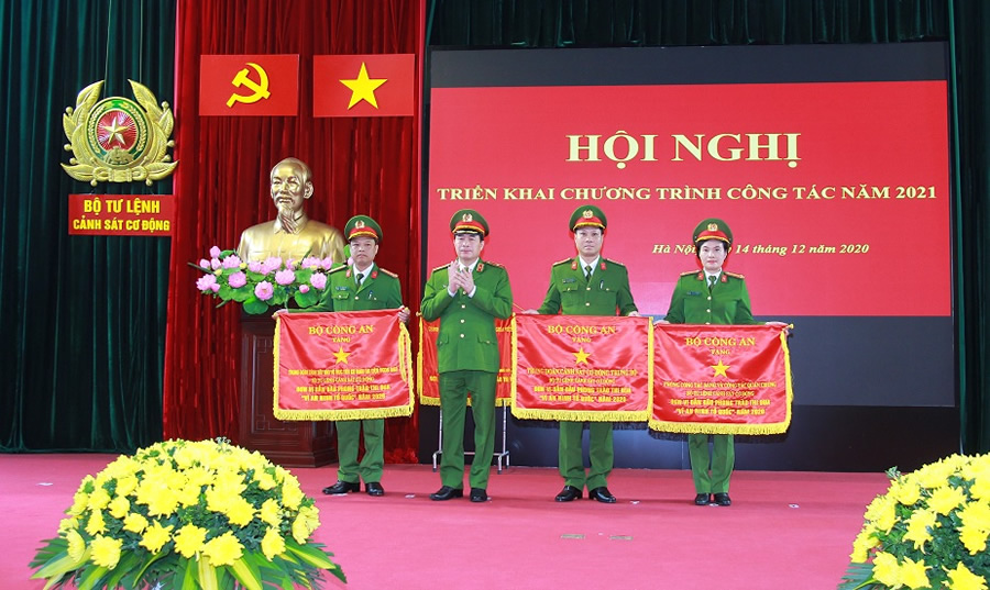 Thứ trưởng Lê Quốc Hùng trao Cờ thi đua của Bộ Công an tặng 3 tập thể trực thuộc Bộ Tư lệnh CSCĐ có thành tích xuất sắc, tiêu biểu trong phong trào thi đua "Vì an ninh Tổ quốc" cấp cơ sở năm 2020. |