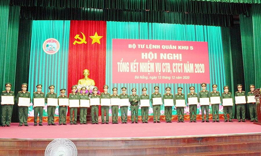 Sáng 13-12, tại Đà Nẵng, Bộ Tư lệnh Quân khu 5 tổng kết nhiệm vụ công tác Đảng, công tác Chính trị (CTĐ, CTCT) năm 2020 và triển khai phương hướng nhiệm vụ năm 2021. Trung tướng Trịnh Đình Thạch - Bí thư Đảng ủy, Chính ủy Quân khu đến dự và chỉ đạo; Thiếu tướng Võ Văn Hưng - Chủ nhiệm Chính trị Quân khu 5 chủ trì hội nghị.