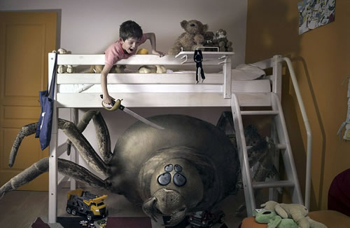 Những con quái vật đáng sợ với móng vuốt sắc nhọn và đôi mắt to, dường như là nỗi sợ hãi của trẻ em và khiến chúng thu mình trong phòng ngủ. Được trang bị gậy, đũa phép, kiếm... các em bé 8,9 tuổi ra tay chống lại các nhân vật phản diện. Đó là ý tưởng trong bộ ảnh của nhiếp ảnh gia người Pháp Laure Fauvel.