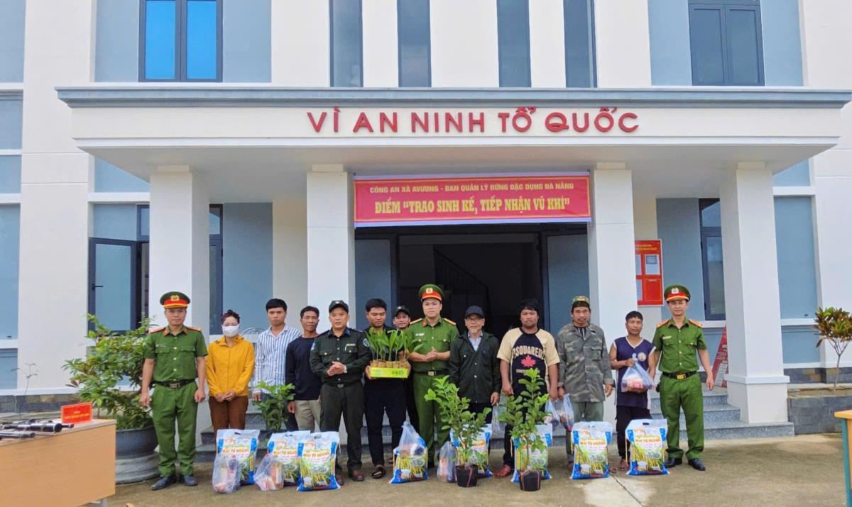Cũng như các địa phương biên giới khác ở huyện Tây Giang (cũ), Công an xã A Vương đã triển khai nhiều mô hình sáng tạo để đảm bảo ANTT và hỗ trợ đời sống người dân như "Lá chắn vùng biên", "Nhà tôi có bình chữa cháy", "Tổ liên gia an toàn PCCC" "Cổng trường an toàn giao thông"… Đặc biệt, mô hình "Trao sinh kế, tiếp nhận vũ khí" nổi bật như một sáng kiến điển hình, nhằm nâng cao nhận thức pháp luật, khuyến khích người dân tự nguyện giao nộp vũ khí tự chế, đồng thời hỗ trợ sinh kế như trao lợn, gà, vịt, giống cây trồng để bà con phát triển sản xuất. Chỉ tính từ ngày 1-7-2025 đến nay, Công an xã A Vương đã tiếp nhận 11 khẩu súng tự chế do người dân tự nguyện giao nộp.