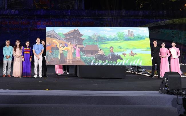 Bức tranh "Điệu chèo cổ và tiếng sáo diều trên cánh đồng vàng" của họa sĩ Ngô Bá Hoàng được đấu giá thiện nguyện với số tiền 1 tỷ đồng.