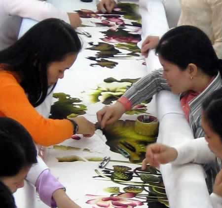 (Cadn.com.vn) - Nhóm nghệ nhân thêu của XQ Việt Nam: Nghệ nhân Hoàng Lệ Xuân - người sáng lập XQ Việt Nam, trưởng nhóm; Nguyễn Hạ Hoàng Quyên, Đào Thị Hương Giang; Lê Thị Thanh Huyền; Nguyễn Thị Trang; Lê Thị Mai; Trần Thị Mỹ Hạnh; Lê Thị Liên; Trần Thị Anh; Phạm Thị Lan phải ngồi bên khung thêu trong 1.000 ngày để hoàn thành bức tranh thêu kỷ lục "Ước nguyện ngàn năm Thăng Long". Đây là những nghệ nhân thêu tranh có tay nghề cao, đã tạo ra nhiều tác phẩm tranh thêu xuất sắc của XQ, và có rất nhiều tranh thêu của họ đã đến rất nhiều đất nước khác nhau trên thế giới.