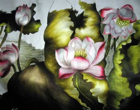 Hoa sen trên tranh thêu. |