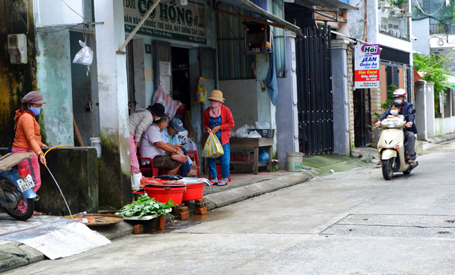Theo ông Nguyễn Hữu Chước, cán bộ Ban Quản lý chợ Cẩm Lệ, do ảnh hưởng dịch bệnh, lượng khách vào chợ giảm gần 50% so với trước đây. Vì thế, việc mua bán của nhiều tiểu thương lâm vào cảnh… ế ẩm. Theo tìm hiểu, đầu năm 2021 khi đại dịch COVID- 19 bùng phát trở lại, Đà Nẵng cùng một số địa phương trong cả nước phải áp dụng nhiều biện pháp giãn cách xã hội theo Chỉ thị 16 của Thủ tướng, mọi hoạt động đi lại, các chợ truyền thống bị phong tỏa… cũng là lúc một số hộ gia đình có điều kiện trao đổi hàng hóa với một số tiểu thương ở các địa phương khác đã tổ chức mua bán rau củ quả, thực phẩm tươi sống tận dụng nhà ở hoặc vỉa hè để mua bán, phục vụ người dân trong khu dân cư. Sau khi dịch bệnh được kiểm soát nhưng vẫn tiềm ẩn nguy cơ lây lan cao ở những tụ điểm đông người nên các bà nội trợ có tâm lý e dè, ngại đến các chợ truyền thống thực hiện việc mua bán, trao đổi hàng hóa… Cũng từ đó, những điểm mua bán tự phát này trở thành địa chỉ mua bán quen thuộc của nhiều người. Thậm chí, có những nơi diễn ra cảnh người mua, kẻ bán tấp nập như trên đường Nguyễn Hoàng (P. Vĩnh Trung, Q. Thanh Khê). Bà Thành, chủ quầy hàng tươi sống trên đường Bình Thái 1, Hòa Thọ Đông (Q. Cẩm Lệ), tâm sự: “Vì dịch bệnh bị thất nghiệp, buộc bà phải bươn chải, kiếm sống”…