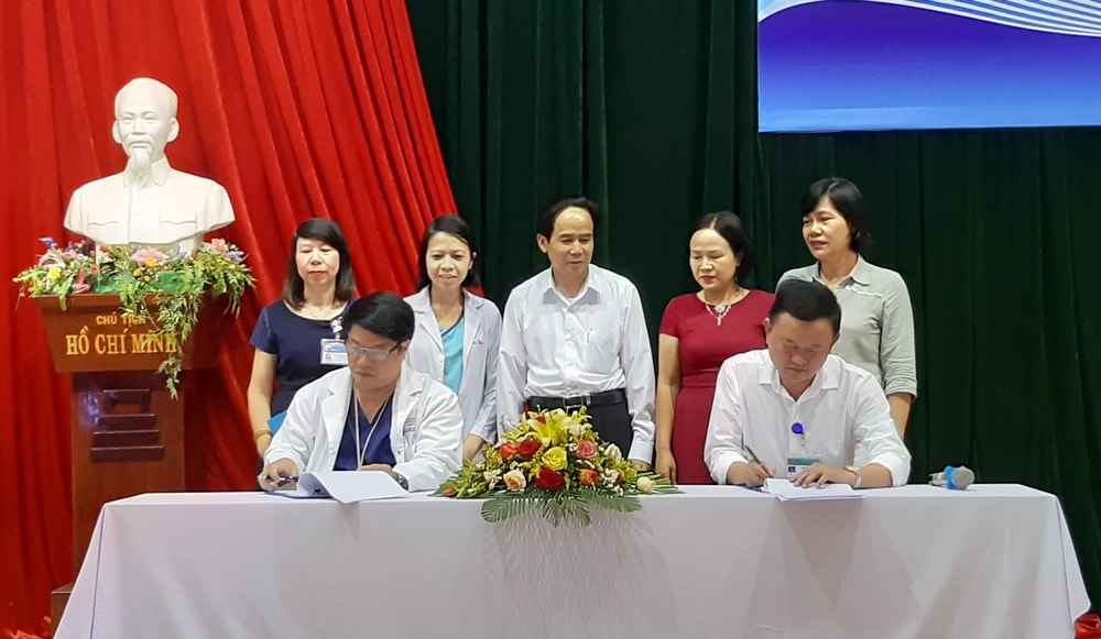 Lãnh đạo BV Phụ sản – Nhi Đà Nẵng và TTYT Q. Sơn Trà ký kết chuyển giao kỹ thuật. |