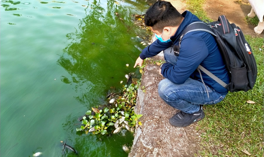 Ngay trong buổi sáng cùng ngày, Phóng viên (P.V) đã trực tiếp có mặt tại hồ điều tiết Công viên 29-3 ghi nhận hiện trạng cá chết theo phản ánh của người dân là có thật. Qua quan sát, dễ dàng nhận thấy các loại cá chết đa số là cá rô phi, cá chép từ 0,3 kg đến 0,5kg bốc mùi hôi thối nồng nặc. Do đang trong thời gian phân hủy nên nhiều loại côn trùng, ruồi tấp vào rỉa phần xác cá gây ra sự nhếch nhác, ô nhiễm. Dọc ven bờ cứ khoảng 2-3 mét lại xuất hiện 1 vạt cá chết từ 5 đến 10 con, 1 số điểm có lượng cá chết nhiều hơn. Ngoài các loại cá đang trong quá trình phân hủy, còn không ít cá rô phi bắt đầu nổi lờ đờ trên mặt nước và chuẩn bị chết dần. Đặc biệt qua ghi nhận, P.V nhận thấy chất lượng nước tại mặt hồ có hiện trạng trở đục; dọc bờ hồ xuất hiện rác thải, chai lọ do người dân vô ý vứt trực tiếp xuống mặt hồ.