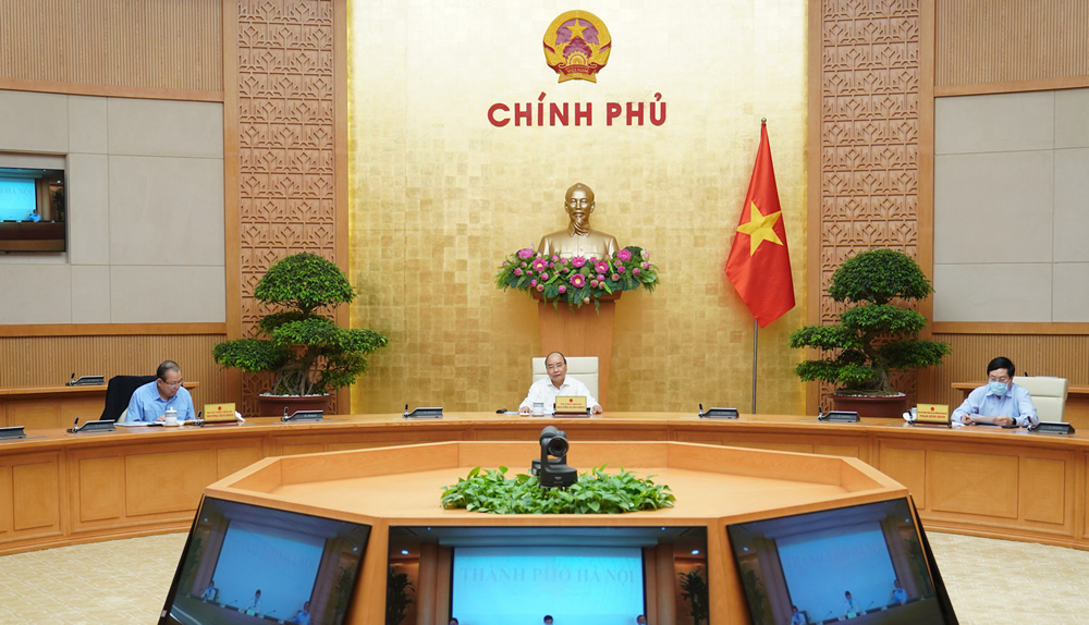 Tán thành với nhiều ý kiến thảo luận tại buổi làm việc, Thủ tướng nêu rõ, Hà Nội là địa phương “có nguy cơ” nhưng một số địa bàn của Hà Nội là “nguy cơ cao” như Thường Tín, Mê Linh và một số nơi nếu có những ca mắc mà chưa đủ 14 ngày. Một số huyện của Hà Nội thuộc diện nguy cơ cao cần áp dụng nghiêm Chỉ thị 16. Thủ tướng giao Chủ tịch UBND TP Hà Nội quyết định thực hiện nghiêm Chỉ thị 16 đối với các địa bàn có nguy cơ cao của thành phố. Thủ tướng cho rằng, huyện có bệnh nhân Covid-19 tại Hà Giang là huyện nguy cơ cao. Cùng với đó, Thủ tướng đặt ra yêu cầu kiểm soát chặt chẽ, nghiêm ngặt nhưng tạo điều kiện cho hoạt động bình thường của người dân. Không được quá vui mừng mà phải cảnh giác để đề ra các biện pháp cụ thể trong phòng, chống Covid-19, Thủ tướng nêu rõ. Chủ tịch UBND các tỉnh, thành phố theo thẩm quyền tạo điều kiện cho sản xuất, kinh doanh lưu thông hàng hóa.