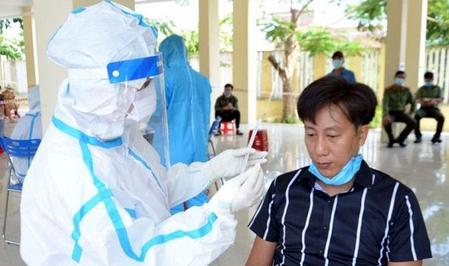 Nhân viên y tế lấy mẫu xét nghiệm cho lực lượng tham gia kỳ thi tốt nghiêp THPT đợt 2 tại Đà Nẵng. |