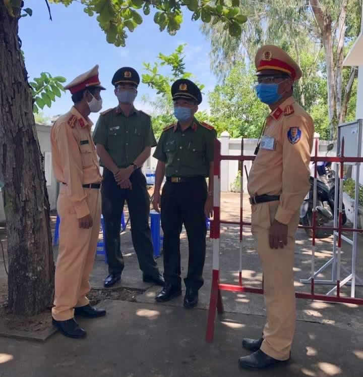 Thiếu tướng Nguyễn Đức Dũng - Giám đốc Công an tỉnh Quảng Nam thăm hỏi, động viên CBCS làm nhiệm vụ tại chốt Điện Bàn. |