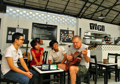 (Cadn.com.vn) - Không gian xinh xắn, lịch lãm của Café Tipi tại số 57-Phạm Văn Nghị, Đà Nẵng đã trở thành một điểm hẹn thú vị cho những sinh viên, công chức muốn nâng cao khả năng nói tiếng Anh. Tại đây, hằng tuần đều diễn ra các hoạt động đặc sắc của những đêm nhạc acoustic tiếng Anh, những buổi giao lưu với các giáo viên ngoại quốc.