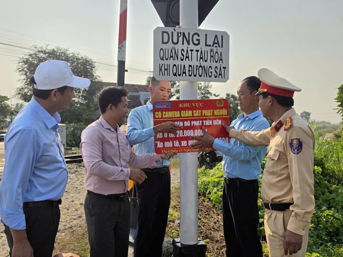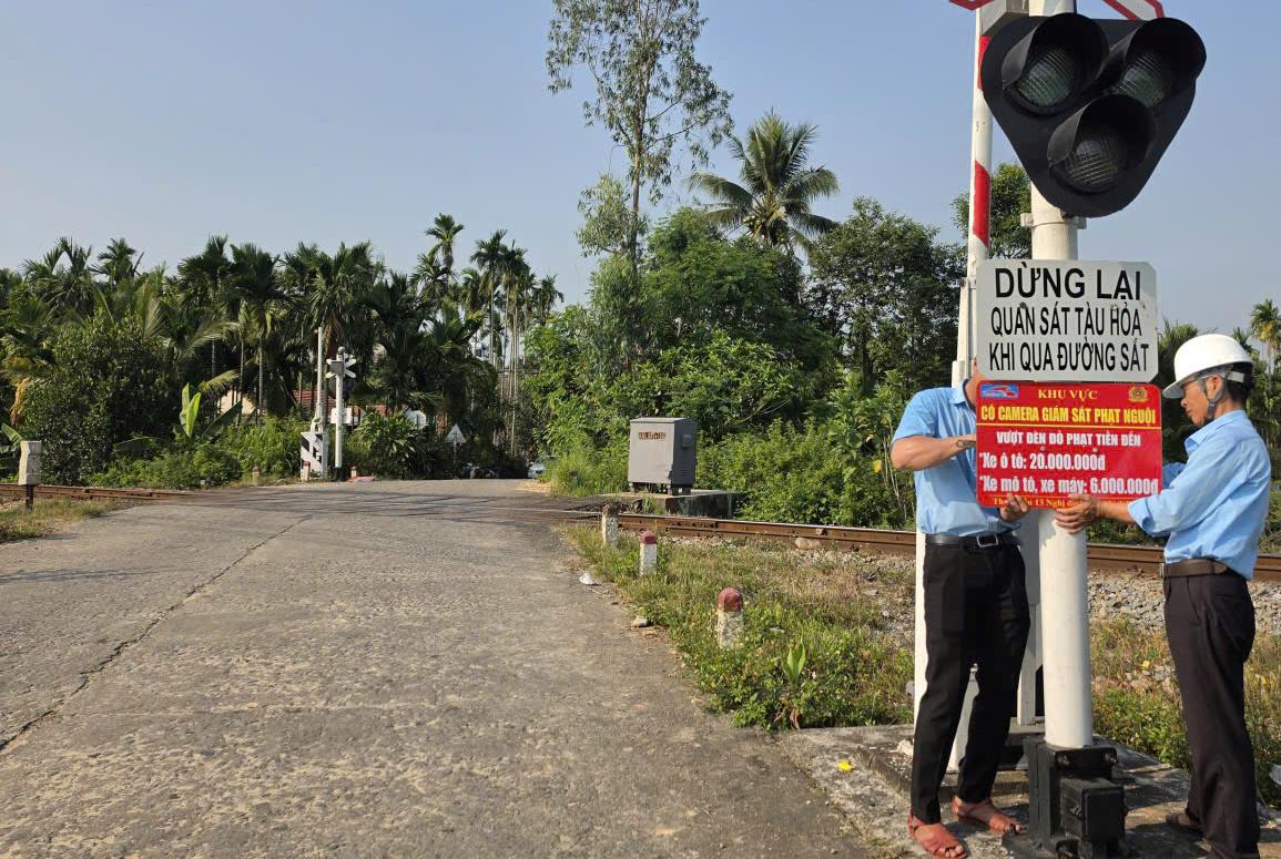 Chiều 10-4, Phòng CSGT Công an tỉnh Quảng Ngãi phối hợp với Công ty Cổ phần Thông tin Tín hiệu Đường sắt Đà Nẵng tổ chức cắm biển cảnh báo “Khu vực có camera giám sát phạt nguội, vượt đèn đỏ phạt tiền đến 20 triệu đồng đối với ô tô và 6 triệu đồng đối với xe máy” tại các điểm đường ngang trên địa bàn.