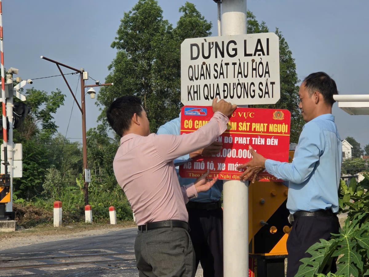 Cắm biển cảnh báo phạt nguội tại các điểm giao cắt đường sắt ở Quảng Ngãi