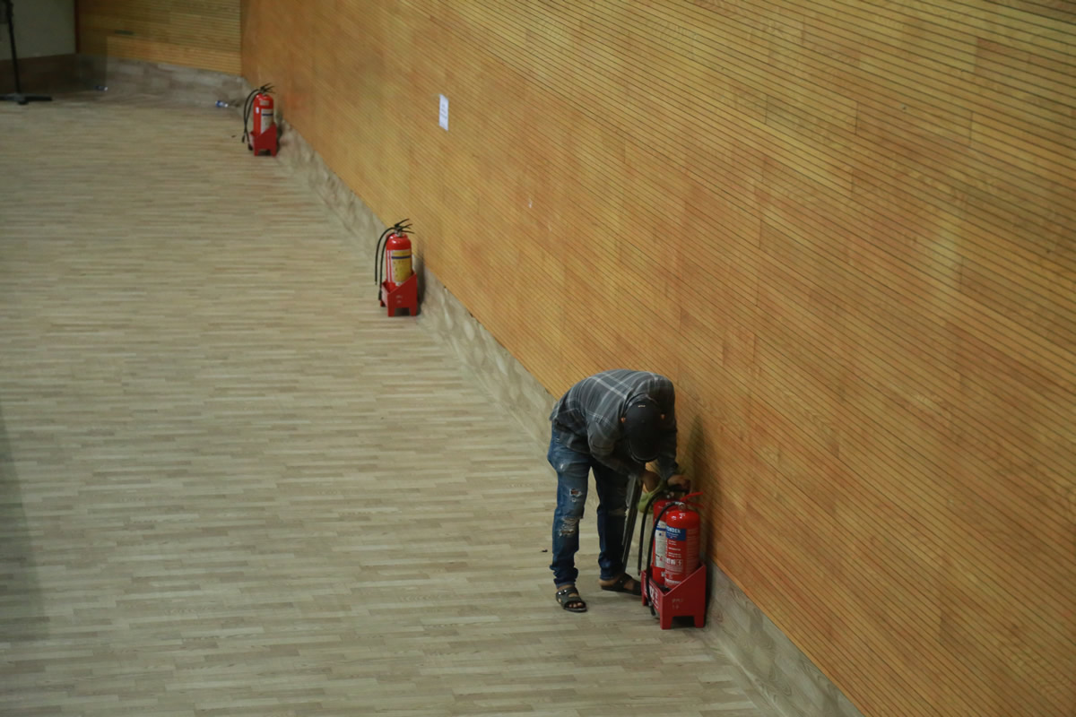 Ngoài hệ thống PCCC tại Cung Thể thao Tiên Sơn, hàng chục bình chữa cháy xách tay cũng được trang bị thêm, sẵn sàng xử lý xự cố.