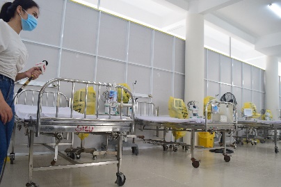 Hệ thống giường bệnh được sử dụng điều trị cho bệnh nhân COVID-19 tại bệnh viện dã chiến. |