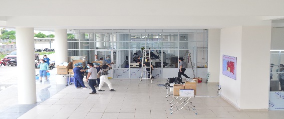 Theo ghi nhận, trong chiều 22-7, các công nhân vẫn đang gấp rút triển khai các bước cuối cùng của việc lắp đặt trang thiết bị. Nhiều hệ thống camera, máy móc hiện đại phục phụ khám chữa bệnh cũng đã được trang bị sẵn sàng.