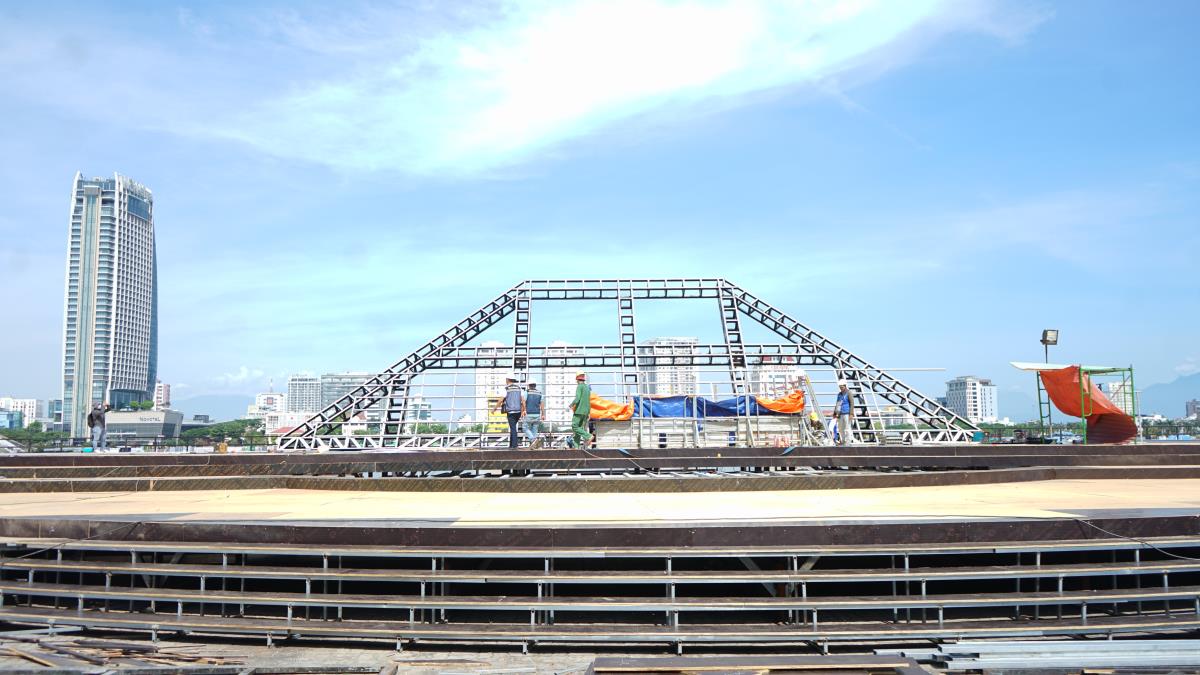 Cận cảnh công trường thi công sân khấu lớn nhất lịch sử Lễ hội pháo hoa quốc tế Đà Nẵng