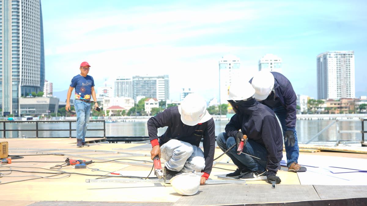 Chỉ còn ít ngày nữa, Lễ hội pháo hoa quốc tế Đà Nẵng (DIFF) 2025 sẽ chính thức khai mạc. Tại khu vực sân khấu và khán đài bên bờ sông Hàn, không khí thi công đang diễn ra khẩn trương, hối hả từng giờ. Những công trình quy mô lớn, thiết kế hiện đại đang dần thành hình, sẵn sàng cho mùa lễ hội rực rỡ và ấn tượng nhất trong suốt 15 năm tổ chức DIFF.