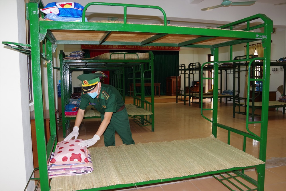 BĐBP tỉnh đã điều động 15 cán bộ trực tiếp tham gia tại khu vực cách ly. Trong đó 12 đồng chí làm công tác bảo vệ trực 24/24h; 3 đồng chí quân y làm nhiệm vụ đón tiếp, kiểm tra thân nhiệt người đến cách ly, đồng thời tiêu độc khử trùng thường xuyên toàn khu vực 2 lần/ngày. |