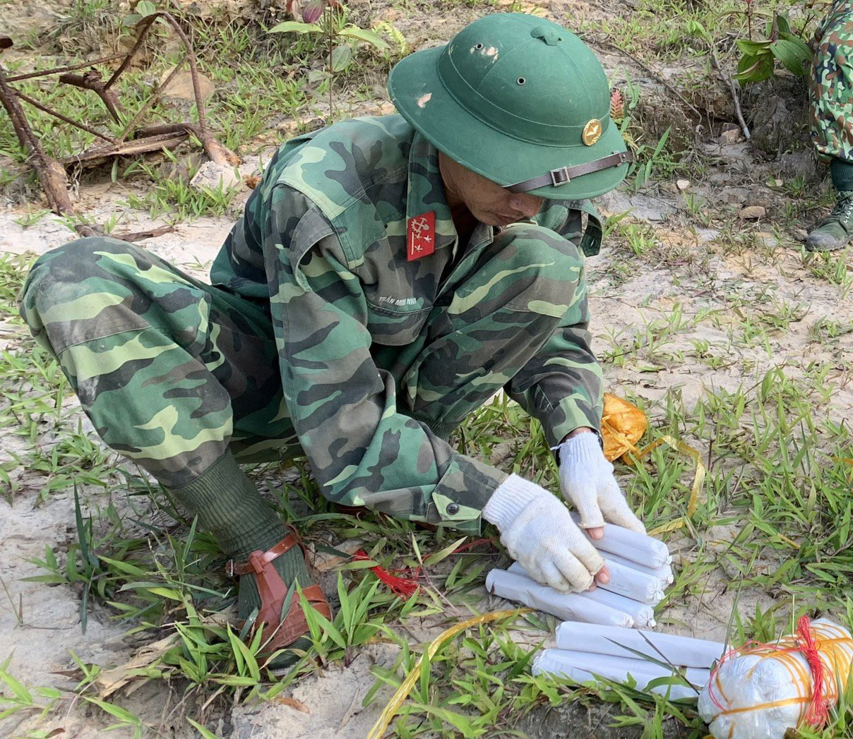 CBCS BCH Quân sự chuẩn bị thuốc nổ tùy theo quy mô của từng hầm vàng. |