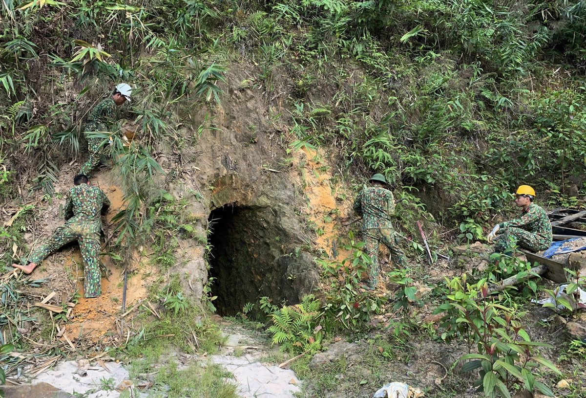 Để thực hiện phương án hiệu quả, lực lượng chức năng đã khảo sát thực địa tỉ mỉ từng hầm vàng. |