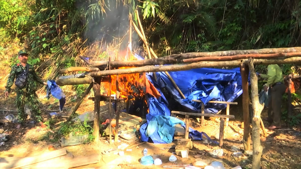 Hàng chục lán trại dựng trái phép cùng hệ thống máy móc, phương tiện của “vàng tặc” cũng đã bị tiêu hủy. |
