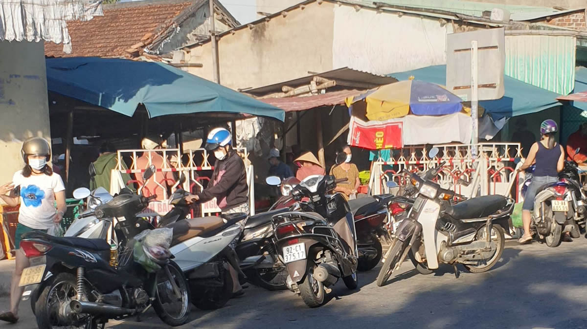 Sáng 18-7, tại khu chợ tự phát ở Ngã tư thôn La Bông (xã Hòa Tiến, H. Hòa Vang), xe máy tiếp tục dựng ngổn ngang lấn chiếm lòng lề đường, người mua kẻ bán tấp nập nhưng lại không có một bộ phận nào giám sát về công tác phòng chống dịch theo quy định "5K" của Bộ Y tế; còn ở góc độ an toàn thực phẩm thì việc kinh doanh hàng hóa nơi đây không chịu bất kỳ sự kiểm soát nào… Cùng với lợi thế giá rẻ, phù hợp với túi tiền, lại tiện việc đi lại nên chợ tự phát này vẫn luôn thu hút được nhiều người tiêu dùng là các đối tượng nông dân, lao động trong khu vực. "Dù biết mua bán tại chợ tự phát là vi phạm quy định phòng chống dịch, nhưng họ vẫn cố tình làm ngơ và cho rằng, do dịch bùng phát khiến đời sống khó khăn nên đành phải làm liều", một tiểu thương cho biết.