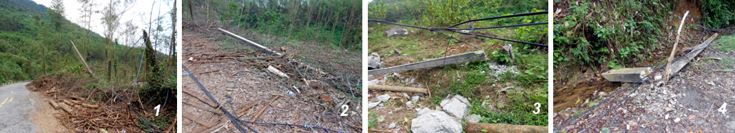 Trên QL14G, đoạn qua xã Hòa Phú (Hòa Vang, TP. Đà Nẵng) hiện có nhiều trụ cáp bị gãy do cơn bão số 9 gây ra. Hiện nay, nhiều loại dây cáp và nhiều trụ bị gãy nằm la liệt dưới mặt đất (ảnh 1, 2, 3, 4). Tình trạng nói trên xảy ra đã lâu mong ngành chủ quản sớm phục dựng để an toàn cho hệ thống thông tin liên lạc và cảnh quan văn hóa, văn minh. Ảnh chụp ngày 10-12-2020.