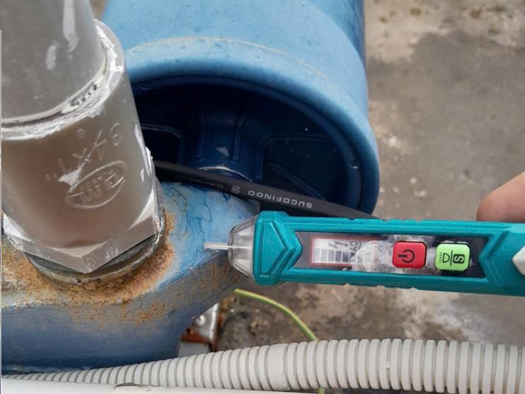 Đáng chú ý, nhiều vụ việc rò rỉ điện rất nguy hiểm đến tính mạng của người dân nếu không bị phát hiện kịp thời. Điển hình, máy bơm nước tại nhà khách hàng T.P.T.B (phường Điện Bàn Bắc, Đà Nẵng) bị rò điện, gây tăng sản lượng tiêu thụ điện và tiềm ẩn nguy cơ mất an toàn. Ngay sau khi phát hiện, nhân viên ngành điện đã xử lý kịp thời, tránh xảy ra sự cố.