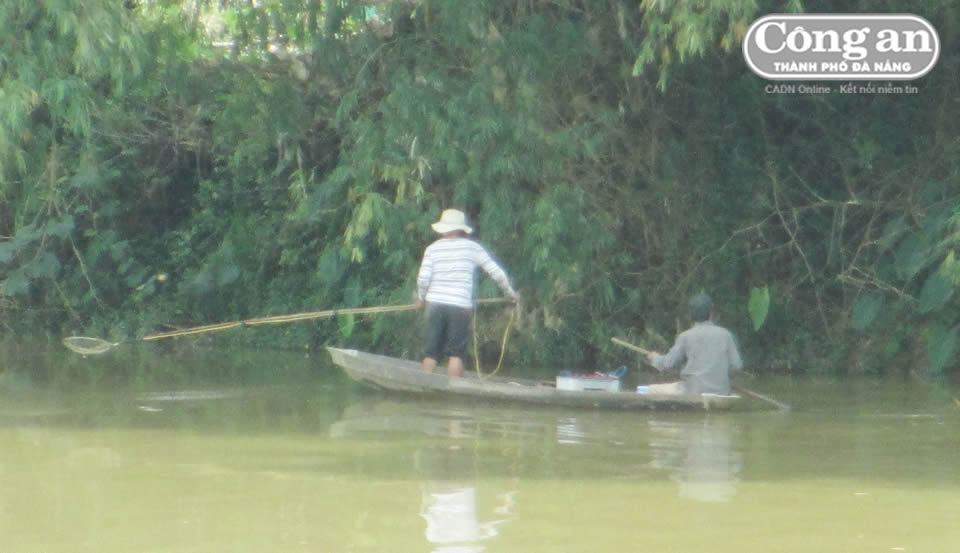 Đánh bắt cá bằng điện bình ven sông Túy Loan. |