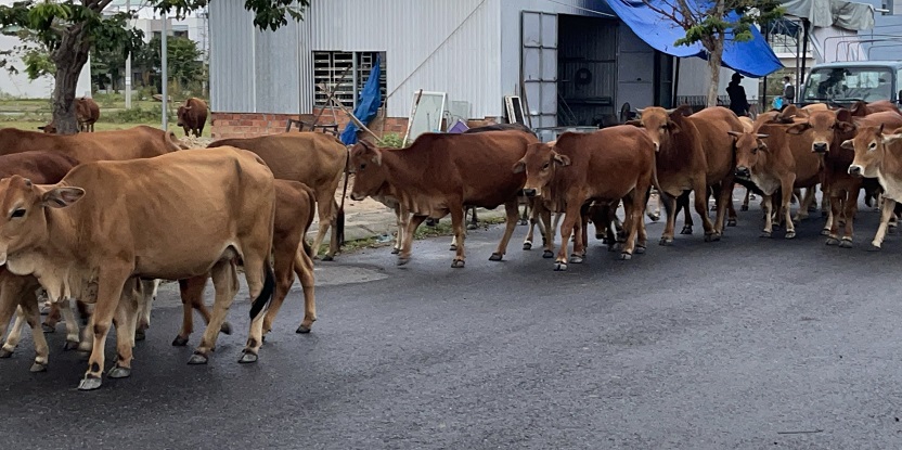 - Chuyện là thật 100% nhé Bề Tui. Bởi từ năm 2018 đến nay, hàng trăm hộ sống tại Khu đô thị sinh thái Hòa Quý – Đồng Nò (thuộc tổ 64, P. Hòa Quý, Q. Ngũ Hành Sơn, Đà Nẵng) “ăn không ngon, ngủ không yên” vì tình trạng trâu bò thả rông trong khu đô thị, gây náo loạn cuộc sống. Không chỉ gây mất TTATGT, đàn bò ngày đêm phóng uế bừa bãi gây bốc mùi hôi thối; phá hoại rau màu, tài sản và hệ thống thùng rác của công ty môi trường đô thị. Tối đến, chủ đàn trâu, bò còn ngang nhiên để gia súc ngủ tại những khu đất trống sát nhà dân.