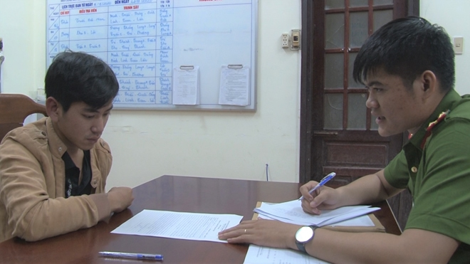 Đối tượng Trần Đức Nhật Anh tại cơ quan Công an. |