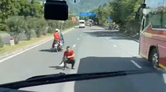 Trong Clip, người này mặc áo thun đỏ in logo và tên của một nhà xe chạy tuyến Đà Nẵng – Quảng Trị. Để ngăn chiếc xe khách di chuyển, người này không chỉ chặn đầu xe, mà còn ngang nhiên ngồi xuống giữa đường. Khi xe dừng lại, người này đứng dậy tiến gần xe chỉ trỏ, sau đó tiếp tục đứng chắn trước mũi xe khiến nhiều phương tiện phía sau bị ùn ứ, không thể di chuyển, tiềm ẩn nguy cơ mất an toàn giao thông…