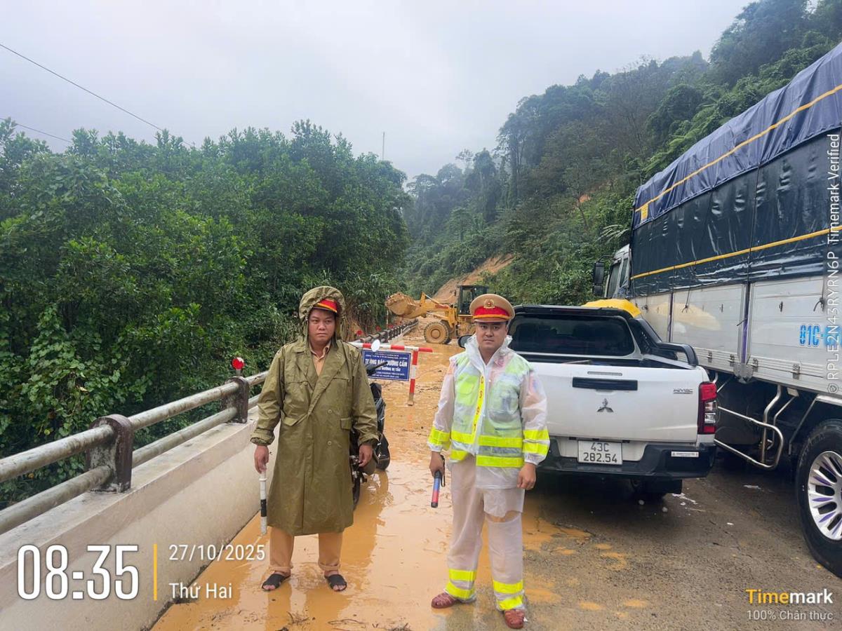 Trong các ngày 26 và 27-10, do ảnh hưởng của đợt mưa lớn kéo dài đã khiến nhiều tuyến đường tại khu vực miền núi và tuyến QL14B; tuyến đường Hồ Chí Minh (Đà Nẵng đi Quảng Ngãi - Kon Tum cũ) xuất hiện nhiều điểm sạt lở, bị ngập úng nghiêm trọng. Để chủ động chống ùn tắc giao thông, lực lượng CSGT đã cắt cử lực lượng tham gia ứng phó,