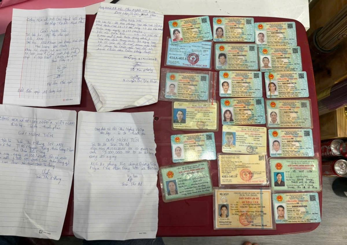 Thủ đoạn hoạt động của các đối tượng là thông qua các mối quan hệ quen biết giới thiệu tìm kiếm người vay. Sau khi có người vay các đối tượng sẽ tiến hành làm các thủ tục xác minh về nơi ở, yêu cầu người vay chụp hình và đưa một số giấy tờ tùy thân như: Căn cước công dân, sổ hộ khẩu, giấy phép lái xe, giấy đăng ký kết hôn... để đối tượng giữ.