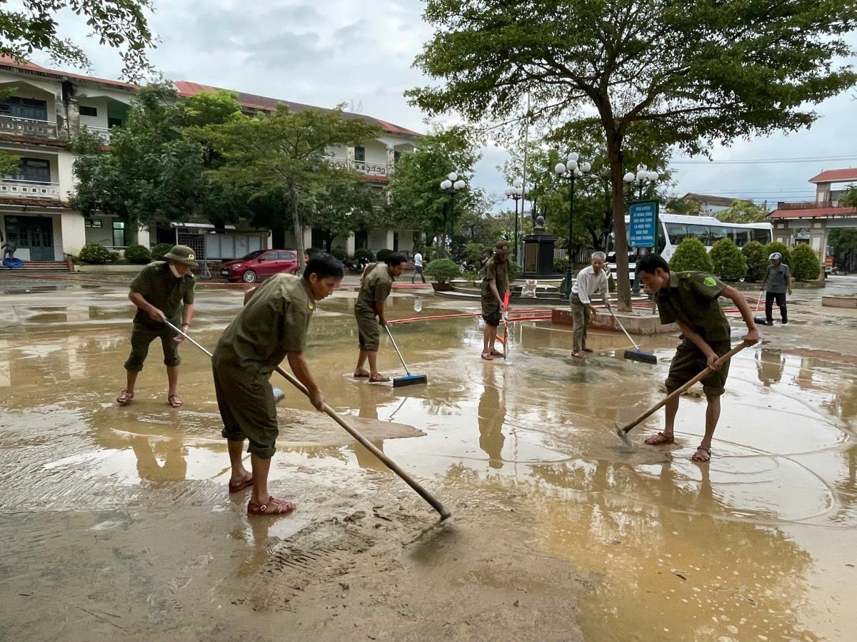 Không chỉ trong mưa lũ, ngay khi mưa ngớt, nước rút, lực lượng Công an và lực lượng bảo vệ ANTT cơ sở lại bắt tay ngay vào giai đoạn khắc phục hậu quả. Từ sáng sớm, họ cùng dân dọn dẹp bùn đất, khơi thông cống rãnh, thu dọn vật dụng bị cuốn trôi, vệ sinh trường học, trạm y tế, nhà văn hóa.Tại nhiều địa bàn, các tổ ANCS còn chủ động phối hợp cùng đoàn thanh niên, phụ nữ tổ chức phát cơm, nước uống, thuốc men, hỗ trợ sửa lại mái nhà cho những hộ dân yếu thế. Mỗi người một việc, mỗi ngôi nhà là một “điểm tựa an toàn” đúng như tinh thần chỉ đạo của lãnh đạo Bộ Công an: “Cứu dân, bảo vệ tính mạng người dân là trên hết, trước hết”.