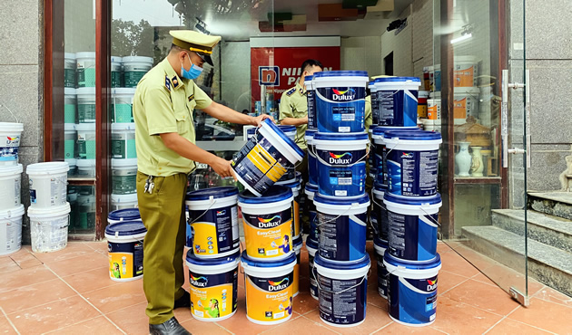 Cơ quan chức năng phát hiện 1 trường hợp kinh doanh sơn nhái nhãn hiệu. |