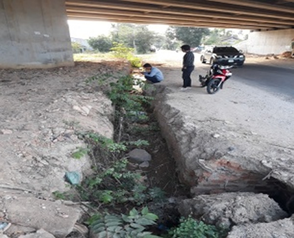 Đơn vị thi công tự ý múc mương thoát nước làm hư hỏng ống nước thải của KDC gây ứ đọng nước khi trời mưa. |