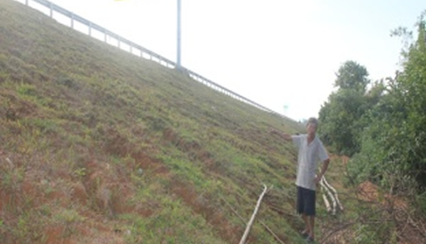 Còn ông Hồ Văn Hiến (57 tuổi, trú thôn Khánh Thọ, xã Tam Thái, H. Phú Ninh), đại diện cho những hộ dân bị ảnh hưởng bức xúc: “Hiện tại có 8 hộ dân có đất nằm gần ta-luy đường cao tốc vẫn chưa nhận tiền đền bù diện tích đất bị ảnh hưởng, bởi việc áp giá đền bù quá thấp. Do đó chiều dài ta-luy gần 1km vẫn chưa thực hiện việc lắp rào chắn bảo vệ và cũng chưa làm mương thoát nước. Hậu quả, trời mưa làm đất đỏ trôi xuống vườn nhà của 8 hộ dân khiến vườn tiêu chết rất nhiều. Ngoài ra, đất đỏ làm bồi lấp nhiều diện tích ruộng của người dân phải bỏ hoang hơn 1 năm nay. Mặc dù người dân đã nhiều lần báo cho chính quyền địa phương để có hướng giải quyết nhưng đến nay vẫn chưa nghe nói gì”.
