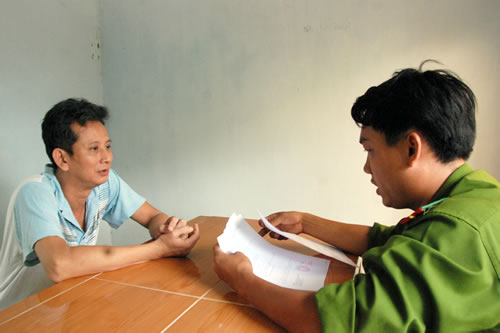 | Điều tra viên cơ quan CSĐT lấy lời khai của Linh. |