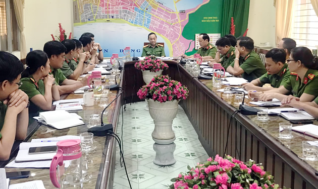 Đà Nẵng- Chiều 15-10, Đại tá Trần Mưu- Phó giám đốc CATP Đà Nẵng có buổi làm việc với CAQ Sơn Trà về công tác bảo vệ Đại hội Đảng bộ TP Đà Nẵng lần thứ XXII.