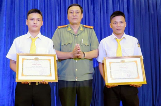 (Cadn.com.vn) - ĐÀ NẴNG - Sáng 3-11, thừa ủy nhiệm của Giám đốc CATP, đại diện lãnh đạo Phòng An ninh kinh tế đã trao Giấy khen kèm theo phần thưởng của Giám đốc CATP cho 2 nhân viên lái xe taxi Tiên Sa là Bùi Quốc Dũng và Hồ Tăng Lũy.