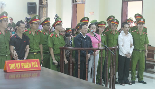 Sau 1 ngày xét xử, theo mức độ, hành vi phạm tội của từng bị cáo, TAND tỉnh Quảng Trị tuyên phạt Thúy tù chung thân về tội “Lừa đảo chiếm đoạt tài sản” và 5 năm tù về tội “Xâm phạm mồ mả, hài cốt”, tổng hợp án phạt: tù chung thân; Duyên: 20 năm tù về tội “Lừa đảo chiếm đoạt tài sản” và 5 năm tù tội “Xâm phạm mồ mả, hài cốt”. Phương 14 năm tù về tội “Lừa đảo chiếm đoạt tài sản” và 4 năm tù tội “Xâm phạm mồ mả, hài cốt”. Hoành 15 năm tù về tội “Lừa đảo chiếm đoạt tài sản” và 5 năm tù về tội “Xâm phạm mồ mả, hài cốt”, 3 năm tù về tội “Trộm cắp tài sản”. Sơn 12 năm tù về tội “Lừa đảo chiếm đoạt tài sản” và 3 năm tù về tội “Xâm phạm mồ mả, hài cốt”. Chiều 4 năm tù về tội “Lừa đảo chiếm đoạt tài sản” và 1 năm tù về tội “Xâm phạm mồ mả, hài cốt”. Chung là đồng phạm có vai trò thứ yếu, Tòa tuyên 1 năm tù nhưng cho hưởng án treo về tội “Xâm phạm mồ mả, hài cốt”.