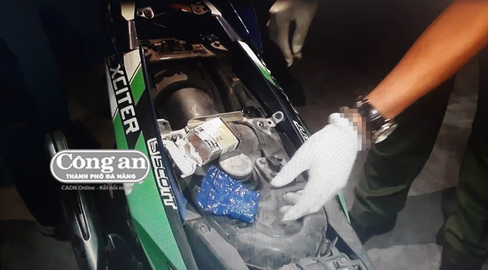 Thu giữ ma túy Khánh Sơn cất giấu trong cốp xe máy. |