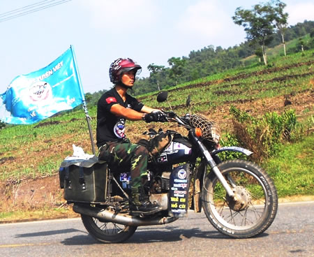 Thành thực hiện ước mơ “xuyên Việt hướng về trẻ em mồ côi” trên chiếc Minsk. |